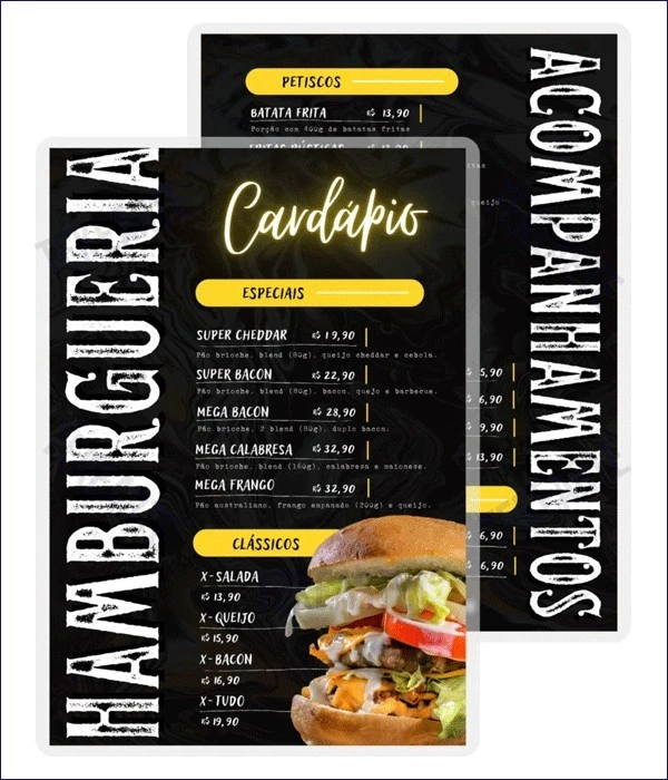 Cardápio PLASTIFICADO FRENTE E VERSO