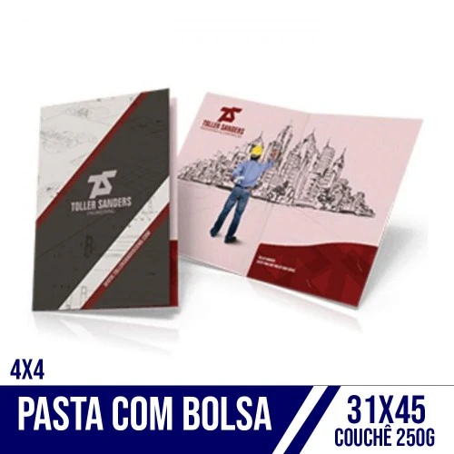 PASTA COM BOLSA PERSONALIZADA | VERNIZ TOTAL FRENTE | 4X4Material: PAPEL COUCHÊ 250GCores: 4x4Tamanho final: 31X45Tamanho com Sangria: 31X45Prazo de produção: 10 dias úteis + prazo de entrega