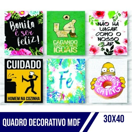Material: Quadros Decorativos produzido em MDF - DIMENSÕES: Tamanho Total do Quadro Montado na Parede: 30x40cm - Informações Técnicas: * O quadro não precisa de moldura, estão pronto para pendurar na parede. * São feitos em adesivos fosco e impressos em alta qualidade. * Aplicado em MDF com espessura de 6mm. - Instalação: * Não é necessário furar a parede para instalação, aplique fita vhb 3M com grande poder adesivo para facilitar a instalação. * Limpe o local que vai ser instalado o quadro com um pano úmido, após secar o local, visualize como vai ser o alinhamento, e retire a proteção da fita dupla face (parte verde da fita) e pressione no lugar desejado para a fixação.